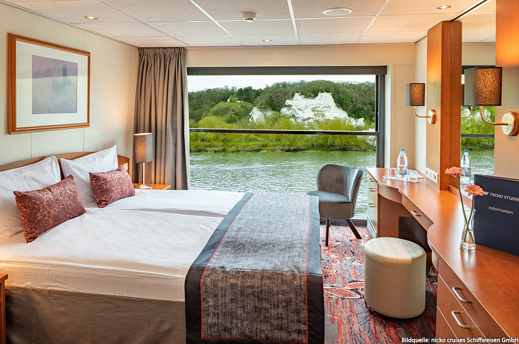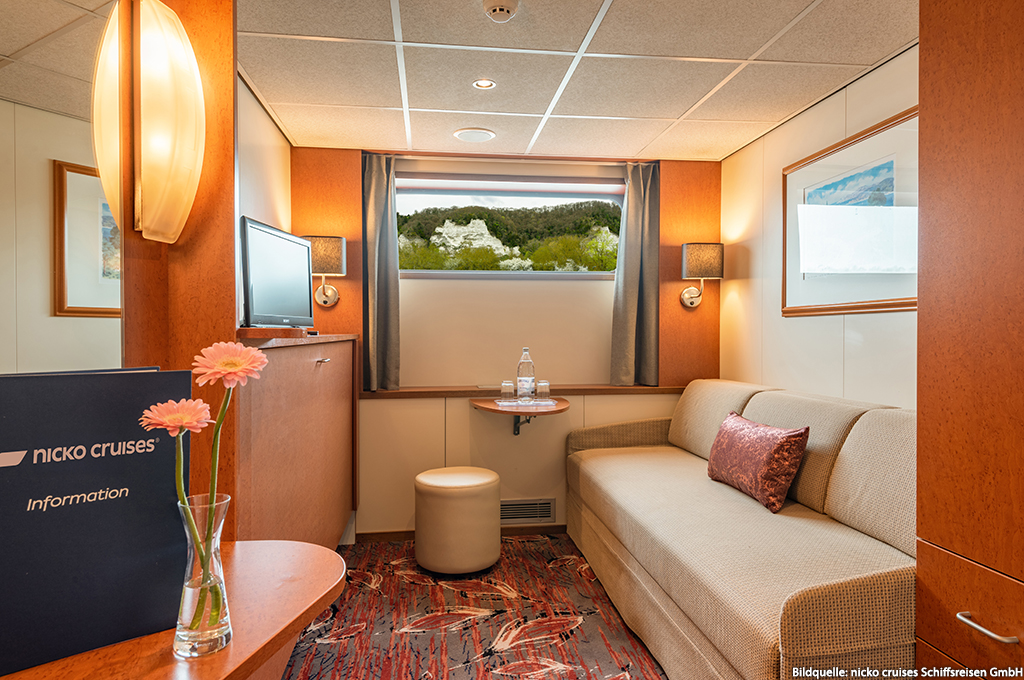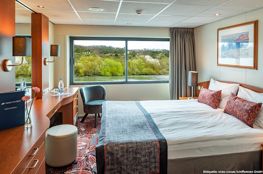 Ausstattung: Deluxe Außenkabine Oberdeck mit absenkbarem Panoramafenster