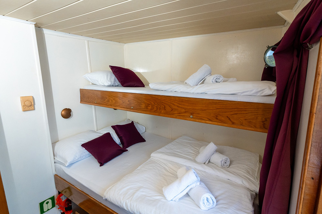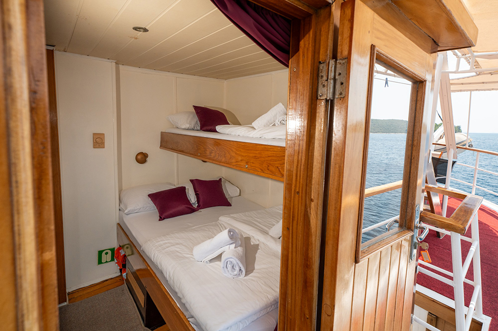Die MS Sveti Vid vereint den rustikalen Charme eines klassischen Holzschiffs mit dem Komfort einer modernen Adria-Yacht. Dank der guten Raumaufteilung und durchdachten Kabinenkonzepte ist die Sveti Vid auch bei Singles mit Kindern und kleineren Gruppen sehr beliebt. Auf 35,5 Metern Länge bietet sie nicht nur ausreichend Platz für 37 Gäste, sondern auch durchdachte Rückzugsorte und großzügige Gemeinschaftsbereiche – vom weitläufigen Sonnendeck mit 37 Liegestühlen bis hin zum gemütlich eingerichteten Salon mit Klimaanlage. Auch das überdachte Achterdeck mit windgeschütztem Essbereich schafft ein angenehmes Bordleben bei jeder Wetterlage. Die Kabinen sind klimatisiert, mit Dusche und WC ausgestattet und so verteilt, dass sowohl Paare als auch Familien passende Rückzugsorte finden. Kostenloses WLAN sorgt für die nötige Verbindung zur Außenwelt, ohne dass das Gefühl von Entschleunigung verloren geht. Als Yacht der Kategorie Comfort Plus eignet sich die Sveti Vid besonders für Gäste, die eine authentische Kreuzfahrt mit persönlicher Note suchen – traditionsreich, familiär geführt und mit dem typischen Flair der kroatischen Adria.