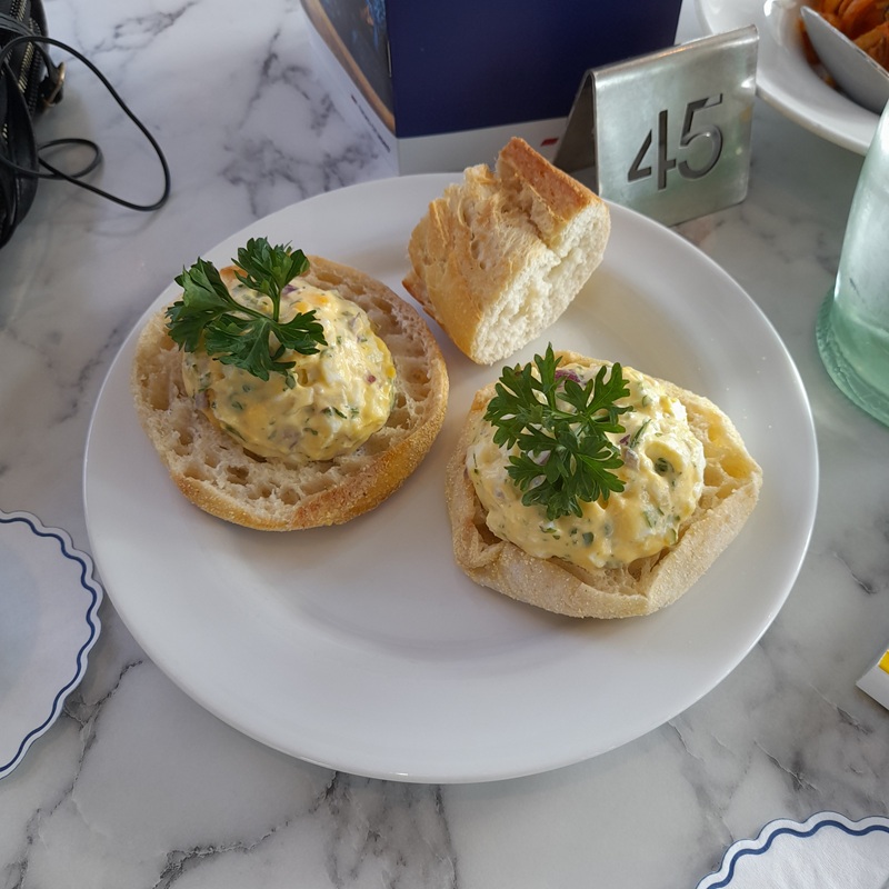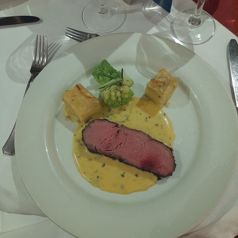Unser freundlicher Kellner fragt uns, ob wir zum Mittag am 3 Gänge Menü im Restaurant teilnehmen oder den Light Lunch im Salon besuchen wollen.