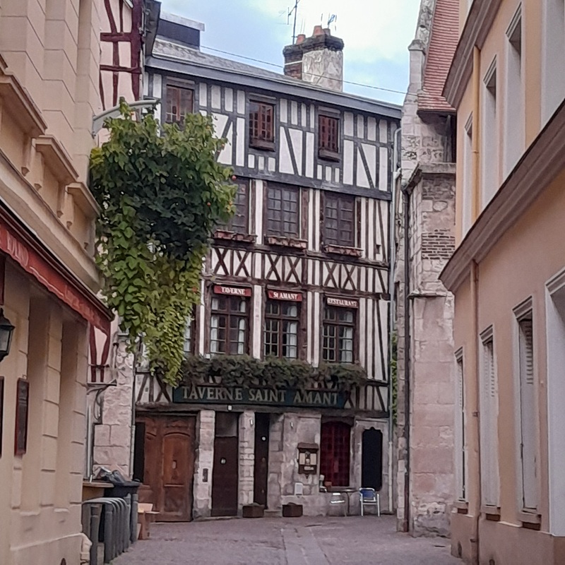Rouen ist eine sehr geschichtsträchtige und sehenswerte Stadt. Gute drei Stunden führt uns die Reiseleiterin kreuz und quer durch die „Stadt der 100 Türme“. Sie zeigt in Rouen mittelalterliche Gänge, idyllische Hinterhöfe, Stadtpalais und charmante Plätze. Zwei Namen begleiten uns dabei.
